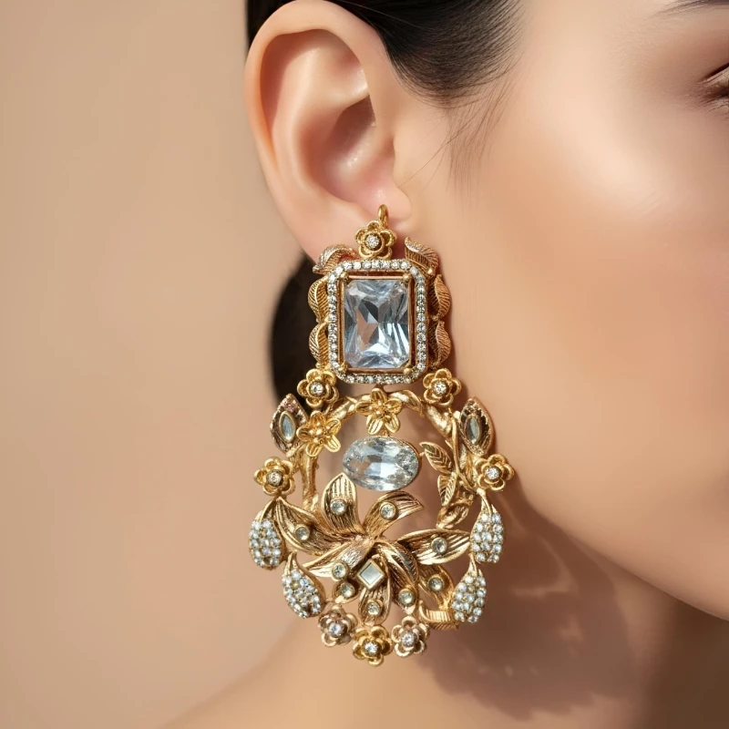 These earrings are crafted with high-quality alloy metal, gold-polished finishing, and smooth stone settings. The design is so delicate that women of all age groups can wear them comfortably. The floral pattern and beautifully arranged stones give them a traditional Turkish touch